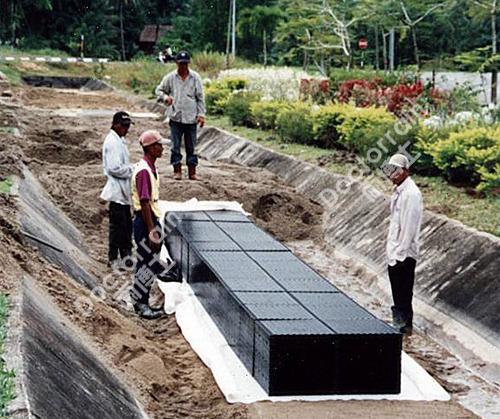 雨水模块是整个雨水处理的关键核心,它能有效地为后续处理工艺提供水质较稳定的水源。采用绿地与人工混合土渗透结构相结合的生态渗透净化池对COD有较高的去除率,并将贮存池设置在生态渗透净化池下部,既节约了土地.又美化了环境。 模块雨水收集的优势: 1 拥有最少量的开挖及回填工作量; 2 最小的构筑物运输量,无需重型吊装及运输设备; 3 最少的现场施工设备; 4 最快的施工时间,当日开挖实现当日回填; 5 最高效率的体积水容积比,却拥有足够的支撑强度; 6 最大的场地使用效率,工作面小,对现场环境影响小。 7 最快的环境恢复效率,材质100%可回收,不产生垃圾。 8 符合自然构筑的生态理念,净化水质,所汇流、储存水质不会对水环境构成污染。 9 可发挥水为资源的效能,进行有效的利用。 我司提供的产品主要用作渗透、收集雨水资源以及防洪、排涝的管理系统,该系统是由具有95%的空间的产品组成的,该系统最早在西方发达国家得到广泛使用,随着中国对水资源管理的需求重视。目前所有产品已被引进中国。我司提供的所有产品均经过严格的测试,具有很高的承载能力。 建立雨水利用系统,不仅可以节约水资源,缓解用水压力,还可缓解城区雨水洪涝,地下水位下降的问题,控制雨水的径流污染,改善小区的生态环境等多层面意义;换句话说,不但产生巨大的经济利益,还会带来良好的社会效益,具有深远的影响。 |
