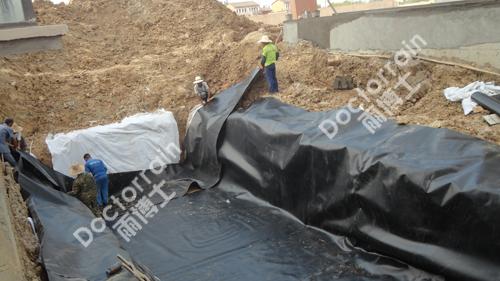 雨博士雨水模块摆放在铺好的防水层里